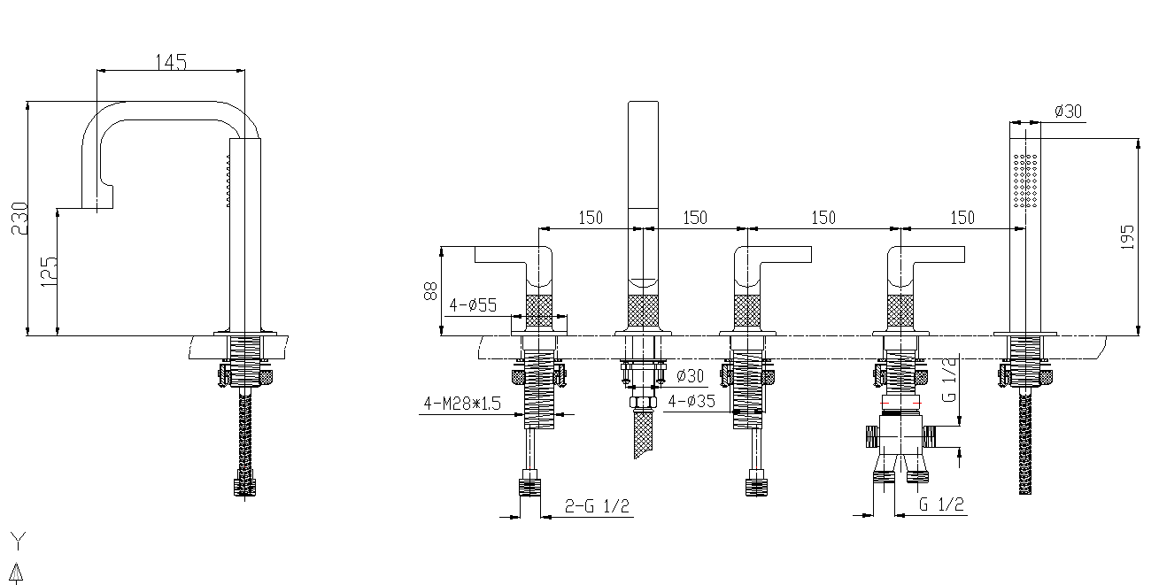 Trang chủ / Sen tắm / Vòi xả bồn tắm trên thành bồn